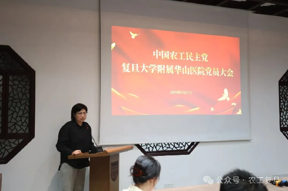 8月21日,农工党复旦大学附属华山医院支部委员会第九次党员大会隆重举行。农工党上海市委专职副主委姚捷,复旦大学附属华山医院党委副书记、纪委书记刘金也,复旦大学上海医学院统战部副部长王迪出席会议并讲话。农工党市委组织部副部长严君良、华山医院党办主任李妍斐出席会议,会议由农工党华山医院支部委员会委员唐昱主持。