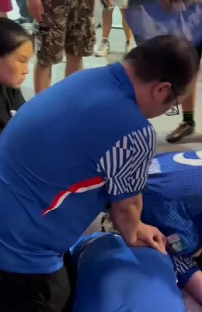 没有多余交流,夫妻俩早已形成的默契让救援行云流水:严格按照 “30 次按压 + 2 次通气” 的标准流程配合,短短三个半回合后,男子喉咙里发出微弱声响,呼吸和心跳竟奇迹般微弱回升。此时,球场工作人员已抱着 AED(自动体外除颤器)飞奔而至,因患者苏醒未启用。