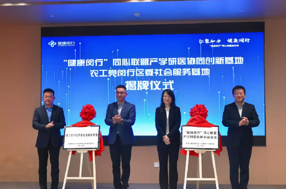 活动现场,农工党上海市委社会服务部部长倪煊标、中共闵行区委统战部副部长张春燕、中共上海市闵行区卫生健康工作委员会副书记张浩、威高集团上海固远有限公司总经理秦明亮共同为“健康闵行”同心联盟产学研医协同创新基地与中国农工民主党闵行区委员会社会服务基地揭牌,标志着两大基地正式落址威高云行智创园。未来,二者将实现功能互补与资源联动:前者聚焦医工交叉研发与技术转化,后者则依托专业优势开展健康科普与义诊服务,共同构建“创新研发”与“健康服务”双向赋能的新格局。