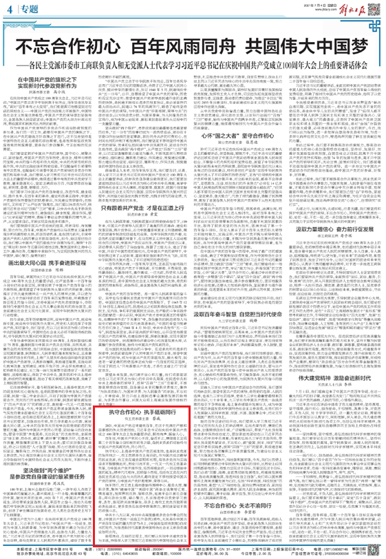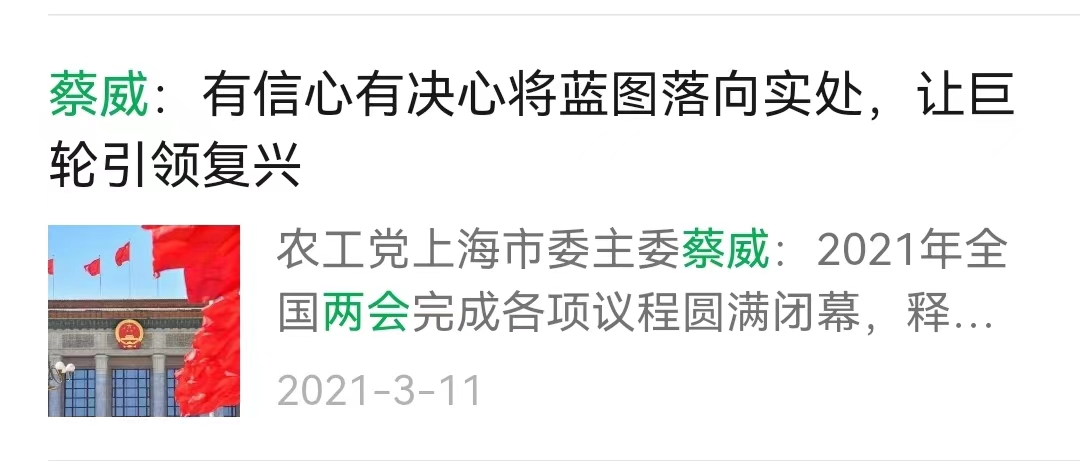 2021年7月,蔡威在《解放日报》发表体会文章:执守合作初心,执手砥砺同行。