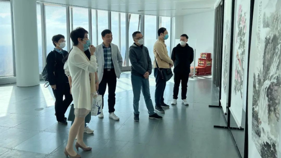 这次“喜迎二十大”海上名家书画展不是“云画展”却“胜似云画展”。当天,机关一支党员们在象征着“上海高度”的上海中心细细观赏书画名作,感受书画家通过色彩与线条展现出的讴歌伟大祖国的真情实感。