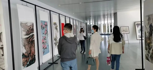 在云卷云舒间,翰墨飘香,丹青溢彩。画作中的“高山流水”、“花团锦簇”与窗外的云天胜日,广厦万间相得益彰。