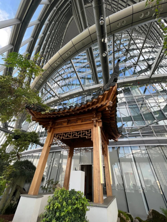 古典园林与现代建筑相互掩映,绿色赋予建筑更多生气。
