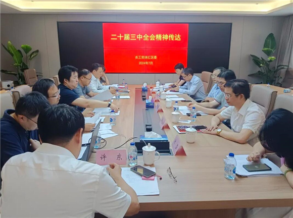 7月30日下午,农工党徐汇区委召开中心组学习会,学习传达中共二十届三中全会精神。农工党上海市委组织部副部长严君良、四级调研员谢雪,农工党徐汇区委主委潘志刚,副主委许建明、许永华、冯珍出席会议,区委委员、支部主任共20余人参加会议。